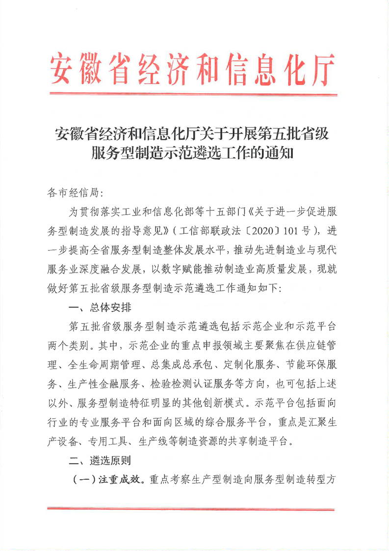 关于开展第五批省级服务型制造示范遴选工作的通知