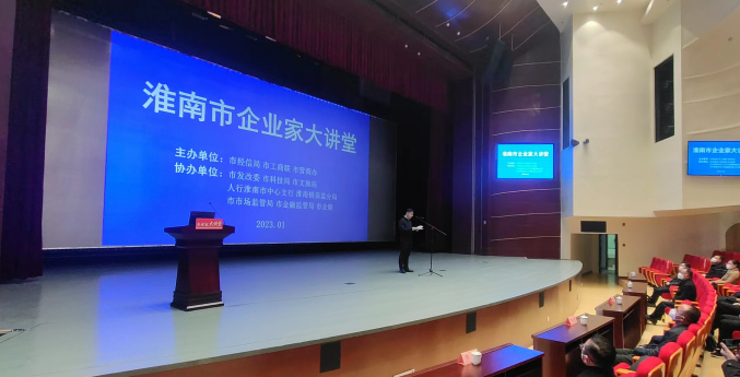1月7日上午,由市经信局、市工商联、市营商办主办的2023年第一期淮南企业家大讲堂在市文化艺术中心一楼多功能厅举行。市委常委、市委统战部部长欧冬林出席活动并致辞。市直有关部门、县区(园区)分管负责同志及经信主管部门主要负责同志,各金融机构、驻淮央企、及省属企业、“专精特新”中小企业负责人共260余人参加活动。